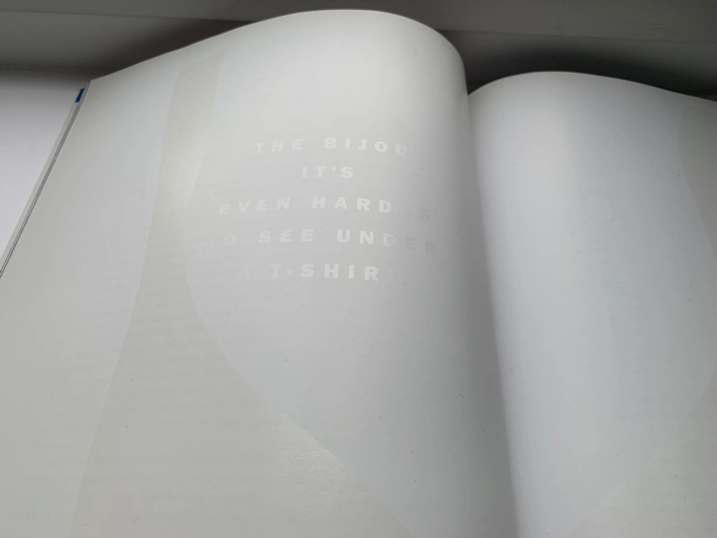 Solution: A completely white page. A headline printed in white varnish was just visible enough to intrigue the reader. When held up to light at the right angle the bra shape and a headline could be read - 'The Bijou. It’s even harder to see under a T shirt.’ The sign-off was ‘The Triumph Bijou, the invisible T shirt bra.'